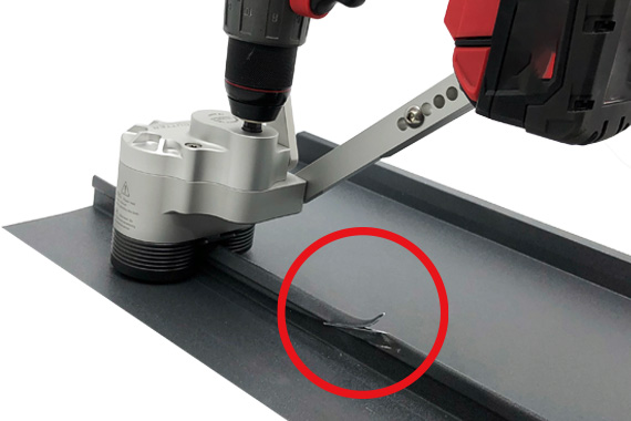 ドリルを駆動力として、一番締め・二番締めのハゼ締結部を切断するためのドリルアタッチメントツールです。